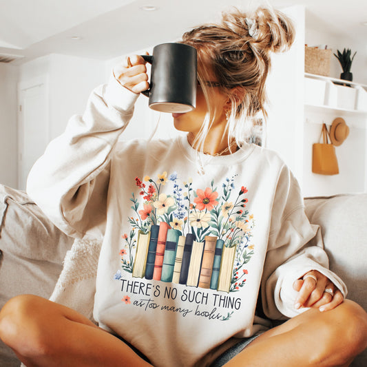 Theres No Such Thing as too Many Books Graphic Crewneck Sweatshirt