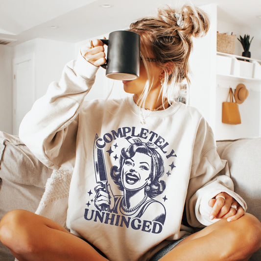Completely Unhinged Bold Retro Graphic Crewneck Sweatshirt